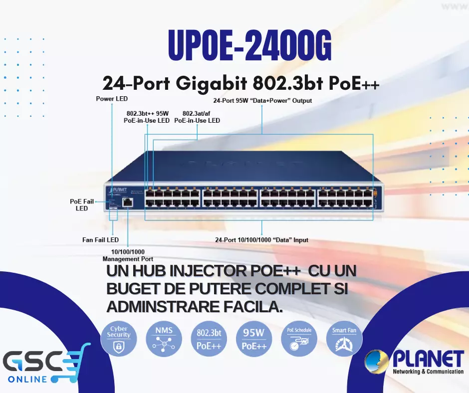24-Port Gigabit 802.3bt PoE++ Managed Injector Hub (800 watts) UPOE-2400G