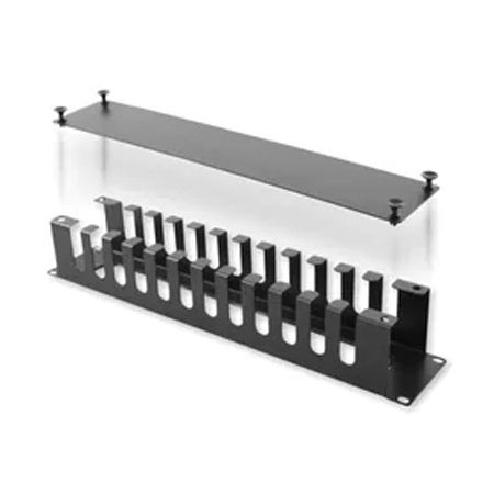 Organizator vertical conceput pentru separarea corectă a cablurilor față de panourile frontale ale cabinetului și pentru managementul/rutarea discretă a pachetelor de cabluri cupru și fibră optică. Livrarea include două console de montaj; recomandat pentru cabinete cu lățime 800 mm. Culoare RAL 7035.