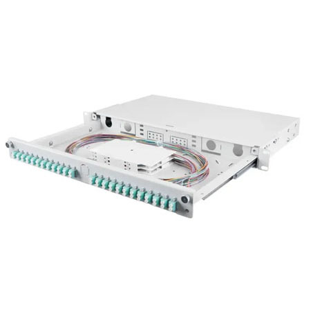 Plăci frontale integrate pentru configurații SC/LC; opțional plăci „screwless” 1U (24×SC simplex/LC duplex sau 24×SC duplex/LC quad)