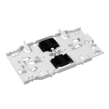 Tavă/casetă de fuziune compactă pentru managementul fibrei în panouri și cutii FO. Configurația include două suporturi a câte 12 protecții de sudură (în total până la 24 splice-uri), optimizată pentru sleeve-uri heat-shrink standard. Culoare neagră pentru integrare discretă în echipamentele din rack.