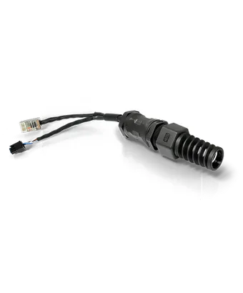 Waterproof IP68 outdoor RJ-45 socket adapter with power plug dedicated to Teltonika Routers without Passive PoE support (RUT360). Works with 10/100Mbps networks. The length is 380mm, but there is available also 160mm length version (QRJ45-P).