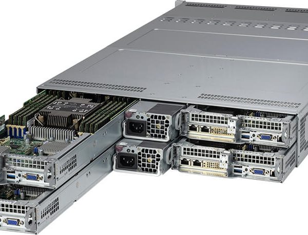 Four hot-pluggable systems (nodes) in a 2U form factor. Each node supports the following:
