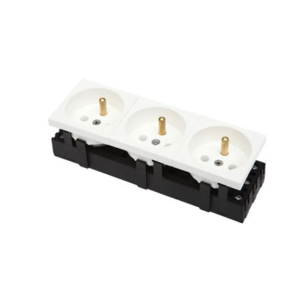 Priza este echipată cu contact de împământare (2P+T) și sistem positive locking, care asigură fixarea fermă în ramă.